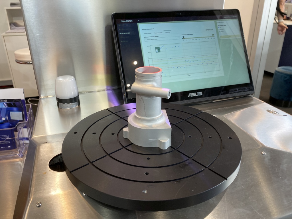 We would like to thank all those who visited us at Vision in Stuttgart and were impressed by the first-class quality of the scans provided by our new QUALIMETER. The QUALIMETER is a multispectral 3D scanner for offline quality control of components that combines 3D, color measurement in RGB and NIR and data processing in a single device. Thanks to the combination of linear and rotary movement, the scanner achieves an optimum measuring range even with very demanding geometries.